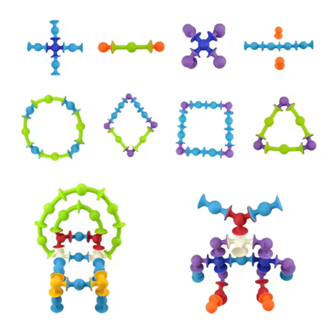 🔹 Bloques flexibles y seguros de tamaño micro y grande, ideales para el desarrollo temprano de habilidades motoras en niños pequeños.